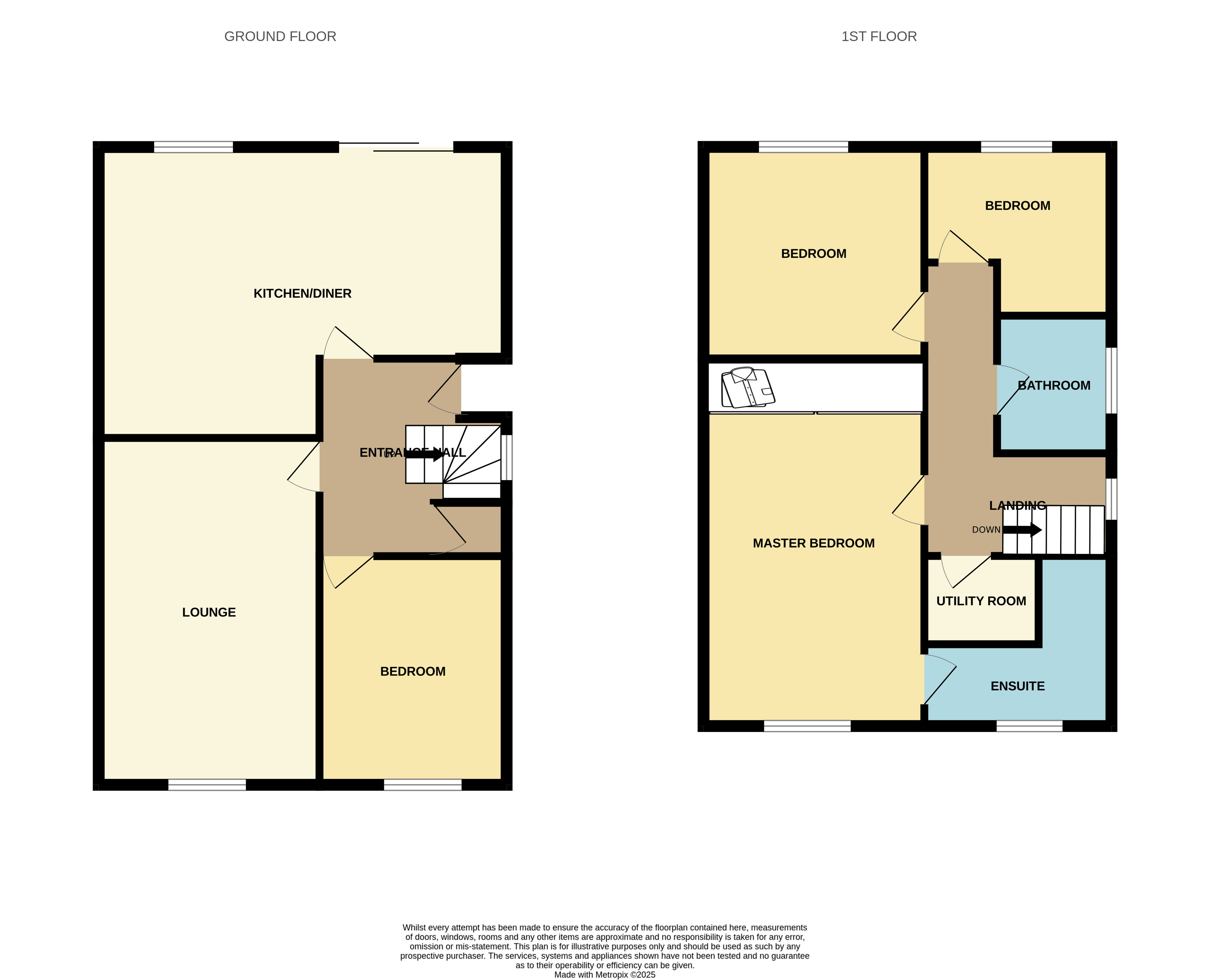The downstairs bedroom can accommodate a double bed and has fitted wardrobes and has front facing views.
