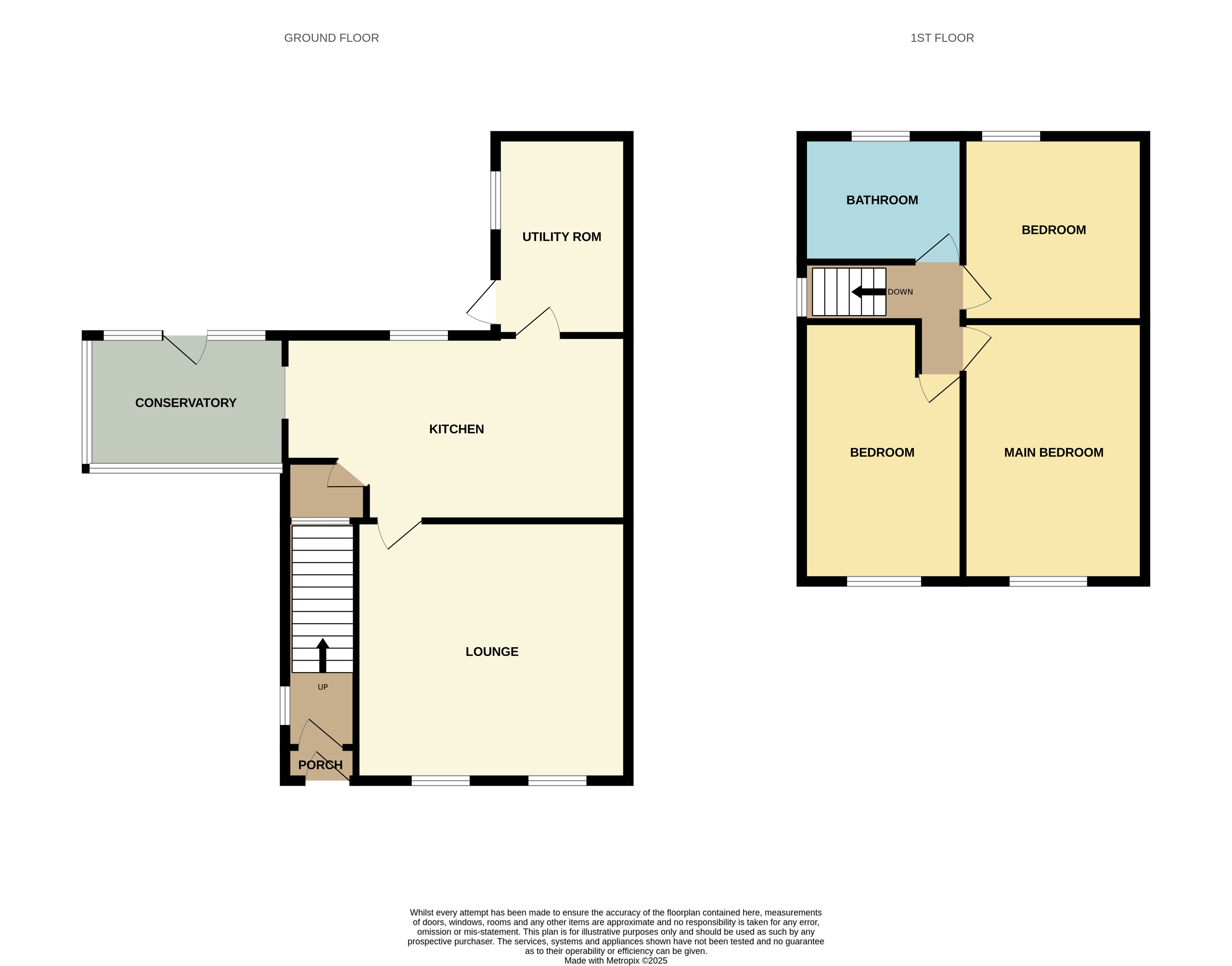 The separate utility room has plenty of storage space with built in cupboards as well as work tops. An external door provides access to the rear garden