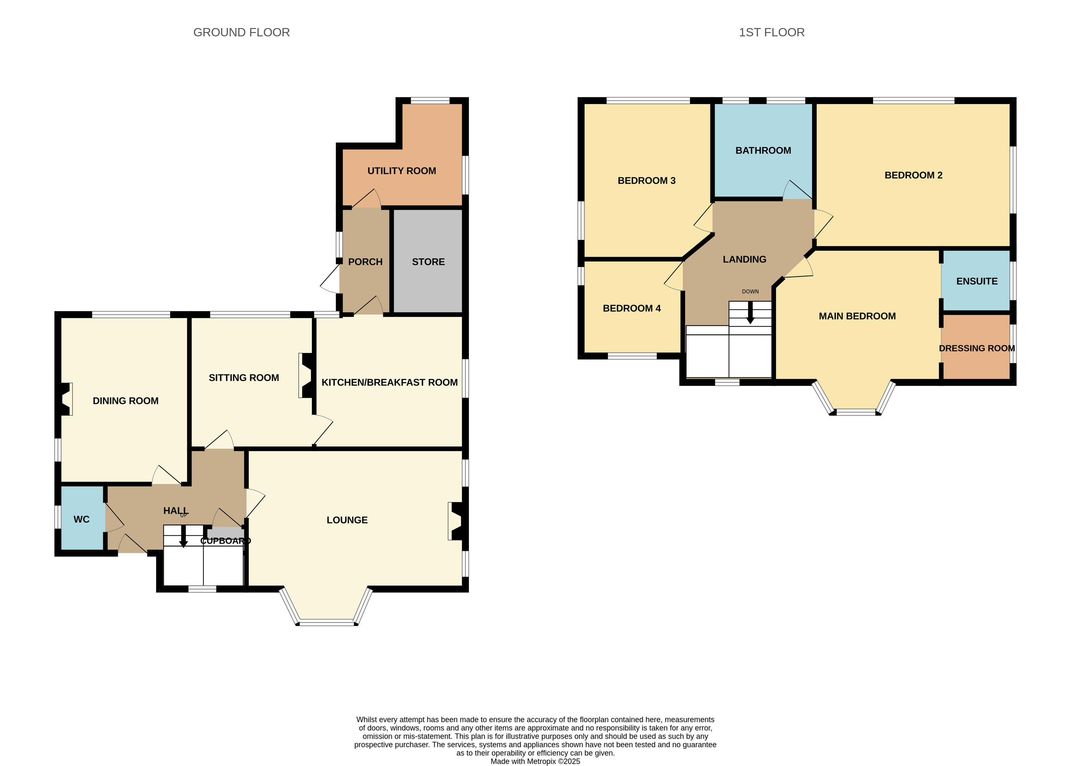 Stairs from the entrance hall rise to the 1st floor landing, which provides access to all 4 bedrooms and the family bathroom. The loft hatch is located here, and the loft is boarded with a drop-down ladder.
